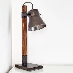 Hofstein Oksbol Tischleuchte Grau, Dunkelbraun, Stahl gebürstet, 1-flammig